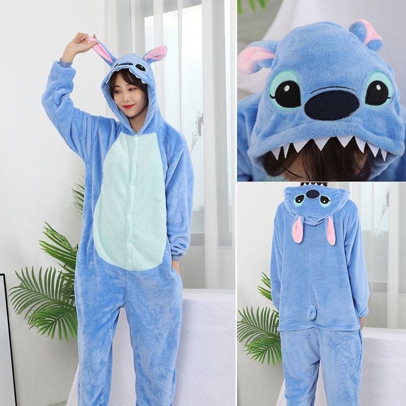 Bộ Đồ Ngủ Liền Thân Hình Gấu Trúc / Stitch Mềm Mại Giữ Ấm Mùa Đông Cho Người Lớn free ship